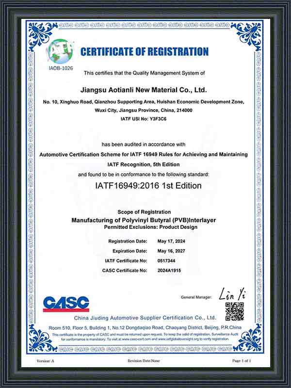 فیلم بین المللی PVB خودرو